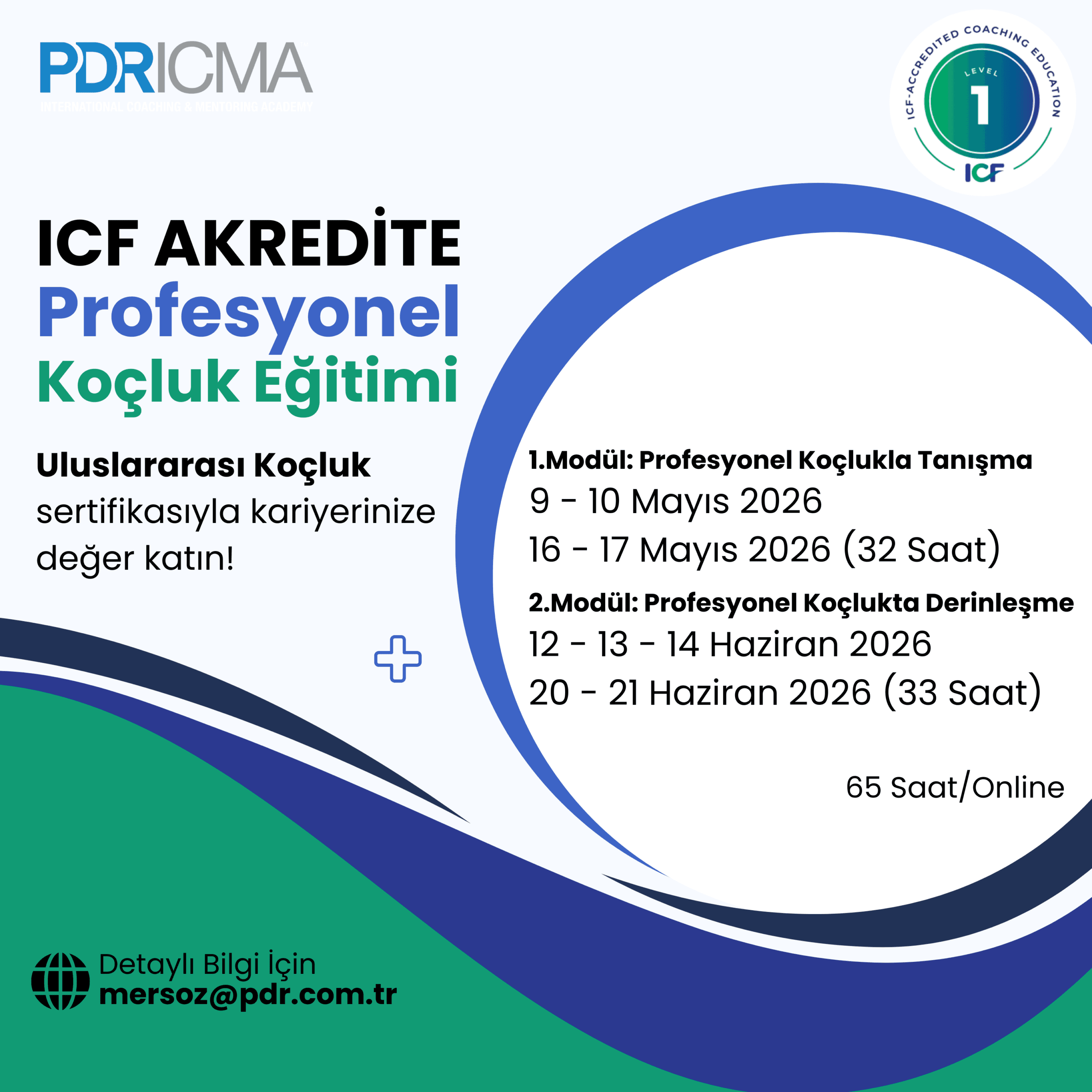 Kişileri koçluk yaklaşımı ile tanıştıran ve çok çeşitli koçluk araçlarıyla donatan ICF Akredite Level 1 Koçluk Eğitimi ile katılımcılar uluslararası geçerliliğe sahip koçluk sertifikasına sahip olurlar.